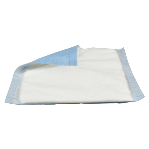 Mehrschichtige Kompressen mit einer blauen flüssigkeitshemmenden Rückseite. Sie sind weich und mit einem absorbierenden Zellstoffkern, in dem die Wundsekrete schnell aufgenommen und umschlossen werden. Die blaue flüssigkeitshemmende Rückseite verhindert das Durchdringen von Wundsekret.